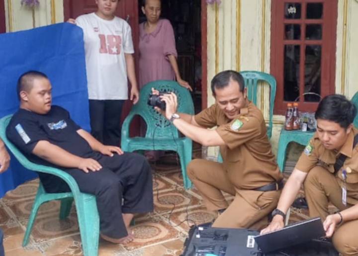 Petugas pelayanan umum mendatangi rumah warga secara door-to-door dengan membawa perangkat perekaman portabel untuk memastikan masyarakat tetap mendapatkan hak identitas kependudukan secara mudah dan cepat.